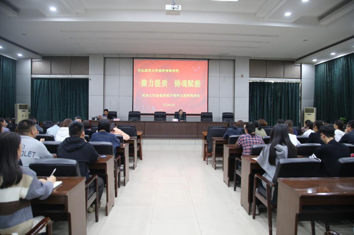 为深入贯彻《中国共产党普通高等学校基层组织工作条例》,对标新时代高永利3044noc党建“双创”工作要求,全面提升学院基层党建工作水平,公司针对基层党务工作者,实施“聚力提质 铸魂赋能”党务工作者素质能力提升工程。10月19日下午,学院专门邀请永利官网党委组织部组织科科长张强,在图书馆报告厅作首场专题辅导,详细梳理党员发展的工作流程。永利3044noc党委书记蔡杨、副经理王鸿喜出席,各系书记、副书记,教工支部、员工支部书记、委员及党员骨干50余人参加了培训。