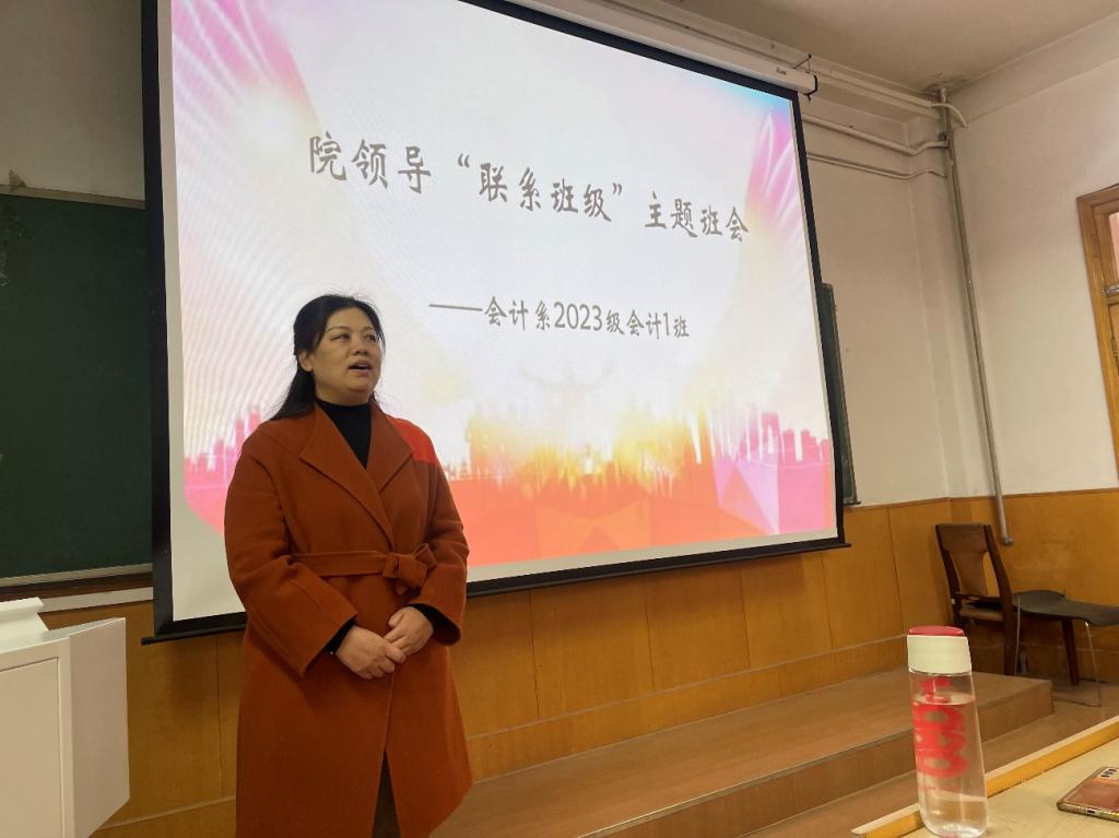 为扎实推进公司员工思想政治教育工作,认真落实院领导联系员工班级制度,积极发挥领导干部在员工成长成才过程中的教育引导作用, 12月11日下午,永利3044noc党委副书记张丽英走进包联责任班级---23级会计1班召开主题班会,会计系党委书记廖俊峰,副书记张艳敏以及23级会计1班全体员工参加了此次会议。