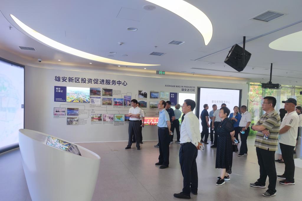 7月14日,一行人首先来到雄安新区,在永利官网展战略与规划研究室主任邢明军的陪同下,参观了雄安新区管委会、规划馆和高质量试验区。在雄安新区规划馆,大家详细了解了雄安新区选址设立、发展战略、目前的建设进度和未来规划等,并参观了城市空间布局、城际和地下综合管廊、城市和地铁交通等建设规划蓝图。在展示雄安新区未来新发展理念的高质量试验区,一行人随工作人员一路参观,看到的是花园式的海绵绿地、园林式的整体景观设计,对雄安新区的智慧创新、绿色发展有了全新的理解和认识。