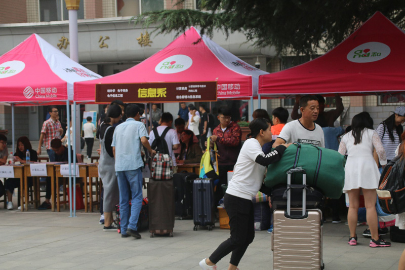 校园里营造出浓厚的迎新氛围,张贴了报到指示牌、校园平面图和安全提示,设置了招生咨询区、家长休息区和公共饮水区;各系和户籍、后勤、校医院等相关部门布置迎新帐篷、摆放宣传展架,展示校园风采、介绍相关政策;印有“永利3044noc录取通知书”和“新生照片墙”的迎新主题海报格外醒目,引得新生和家长们驻足寻找自己的或自己孩子的照片,或拍照留念。值得一提的是,今年学院通过“互联网+”数字迎新系统开通网上缴费功能,大大提高了迎新效率。