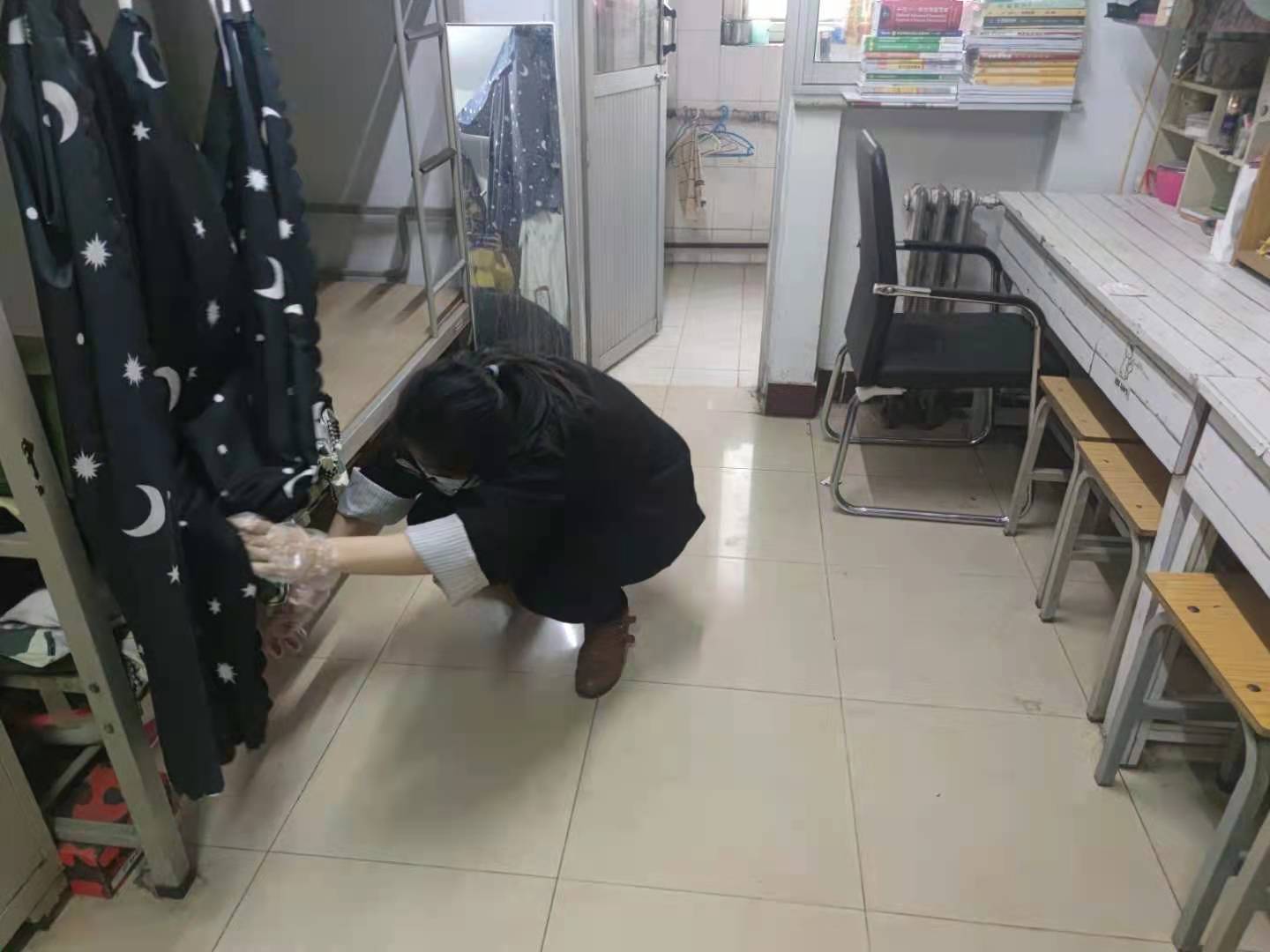 物品归位工作过程中,以辅导员为主,全院教职工团结一心,互相配合,任劳任怨,尽职尽责。如今,宿舍里每一件物品的摆放、擦洗、桌面地面的清洁都是老师们亲手完成的。