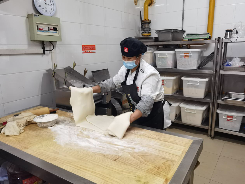 为了能让师生吃到放心餐,餐饮服务中心一直严格对待着食堂饮食卫生的检查和督导。原材料物资进校是餐饮服务闭环中第一环节,其重要性不言而喻,从北门开始消杀、静置、转运、进入正常的保管验收流程,每个环节如铁板钉钉;搬运、消杀、验收、称重、记账,每一步骤都绝不松懈,保障货物使用安全,每一步骤都绝不松懈;时常提醒供货单位要抓时机,组织性价比高品质好的货源,保证品种兼顾价格。“让员工们感到好吃又实惠就是我们的工作。”郭志龙表示。