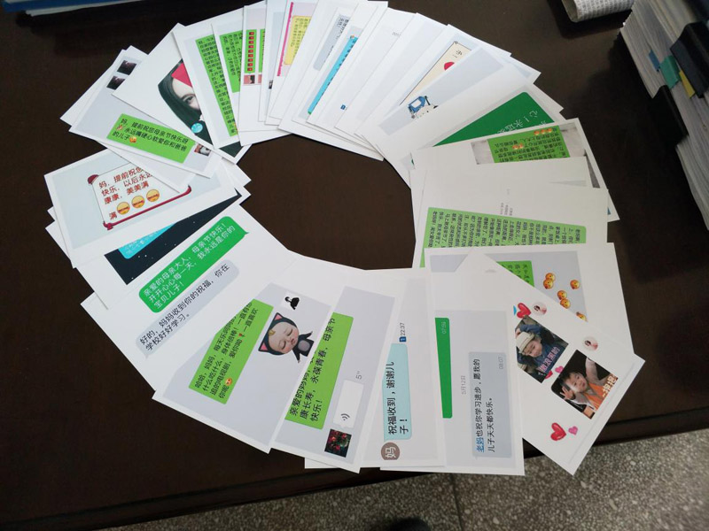 此次活动以“千里传情,感恩母爱”的形式展开,即通过发送短信、微信、打电话等方式来问候母亲,送上节日的祝福,并把信息内容打印出来,制作成展牌,展示大家对母亲美好的祝愿。“老妈,母亲节快乐!虽然不在你身边,也要开开心心!”、“亲爱的妈妈,感谢二十年的付出,一直爱你,母亲节快乐!”、“亲爱的母亲大人,母亲节快乐!”……这一句句感恩的话语饱含了同学们对妈妈深深的爱和思念。辅导员秦晓燕希望大家要发扬中华民族这一传统美德,怀着感恩之心,爱自己的母亲,进而爱每一位长者,爱身边每一个人,让整个社会充满关怀与爱心,让世界变得更和谐。